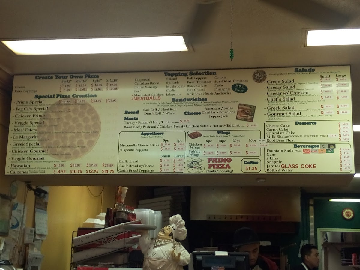 Welcome to Primo Pizza Daly City, your go-to destination for top-notch pizza and delightful service at 7027 Mission St. This gem has garnered rave reviews for its commitment to quality and customer care, evident in heartfelt stories from patrons like Hank Luciano, who praised the staff's kindness during a tough moment. The menu is packed with a variety of delicious options, including the famous Joe's Special, which even without pork offers a flavor that lingers in your memory.